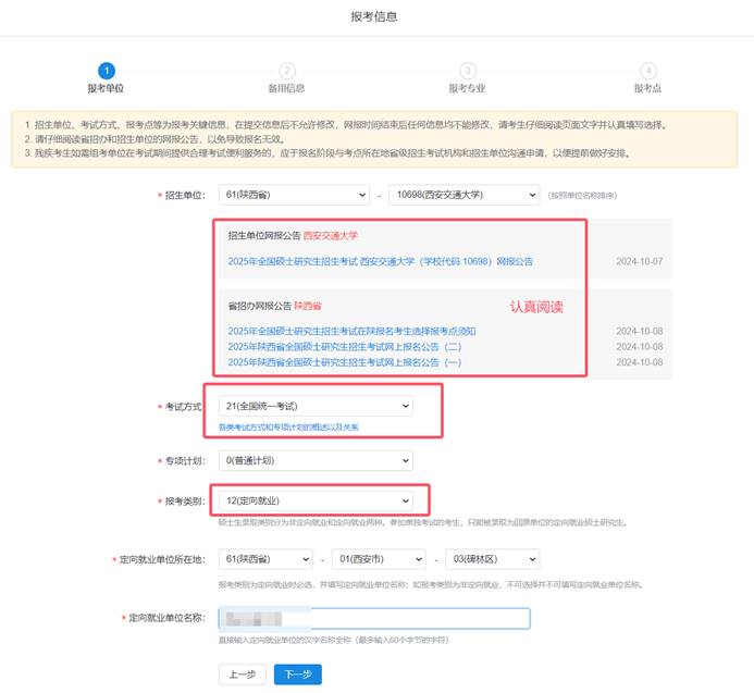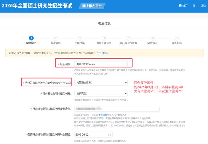 7.考生应当按要求准确填写个人网上报名信息并提供真实材料。考生因网报信息填写错误、填报虚假信息而造成不能考试(含初试和复试)或录取的,后果由考生本人承担。