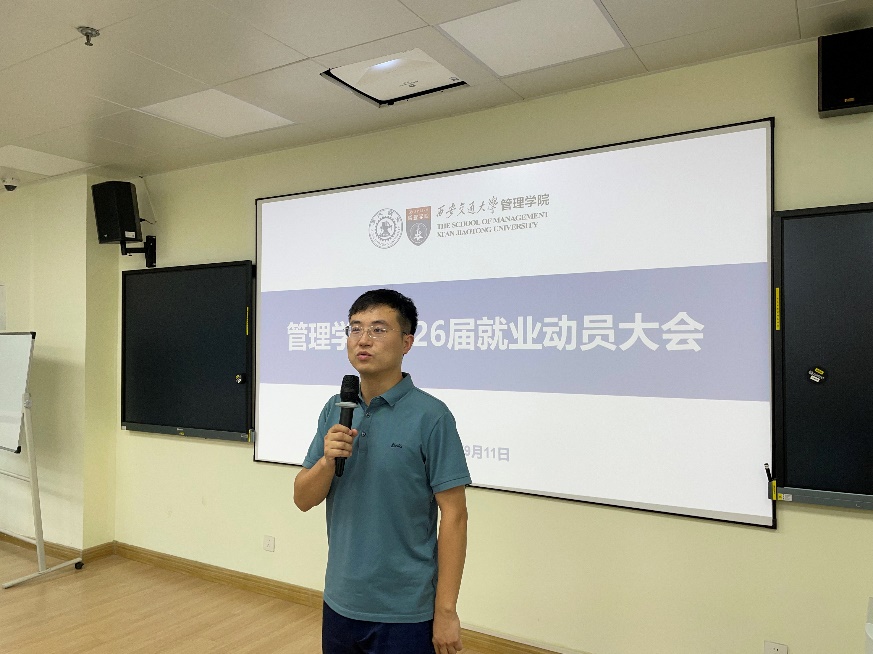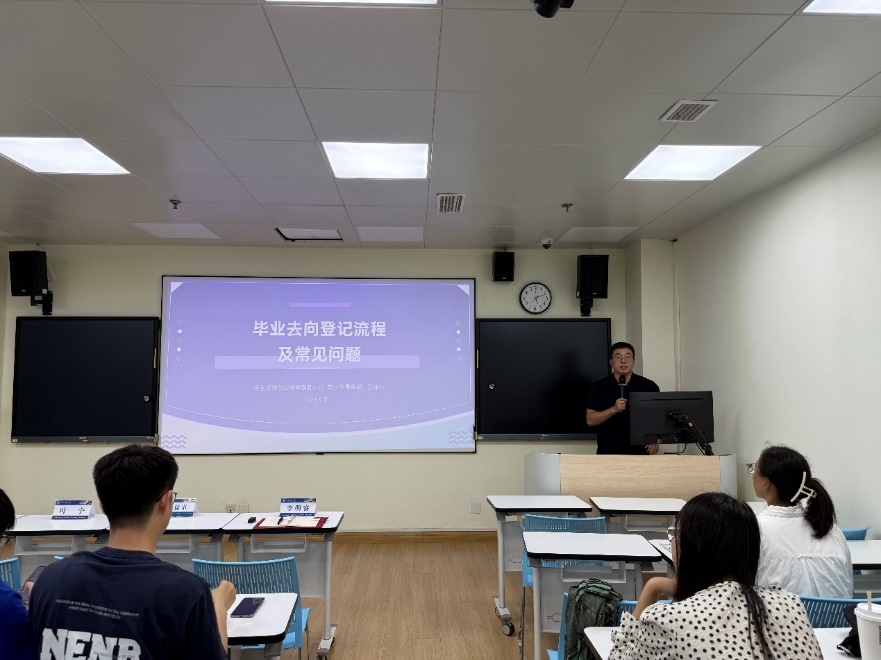最后,李明睿老师做就业动员总结。李老师介绍了近三年学院硕士毕业生的就业去向及选调生报考情况,鼓励同学积极投入求职,遇到问题及时与老师、同学沟通。强调找工作是人生重要节点,希望同学把握机会。最后祝愿2026届同学在毕业季斩获满意工作,开启人生新阶段!
