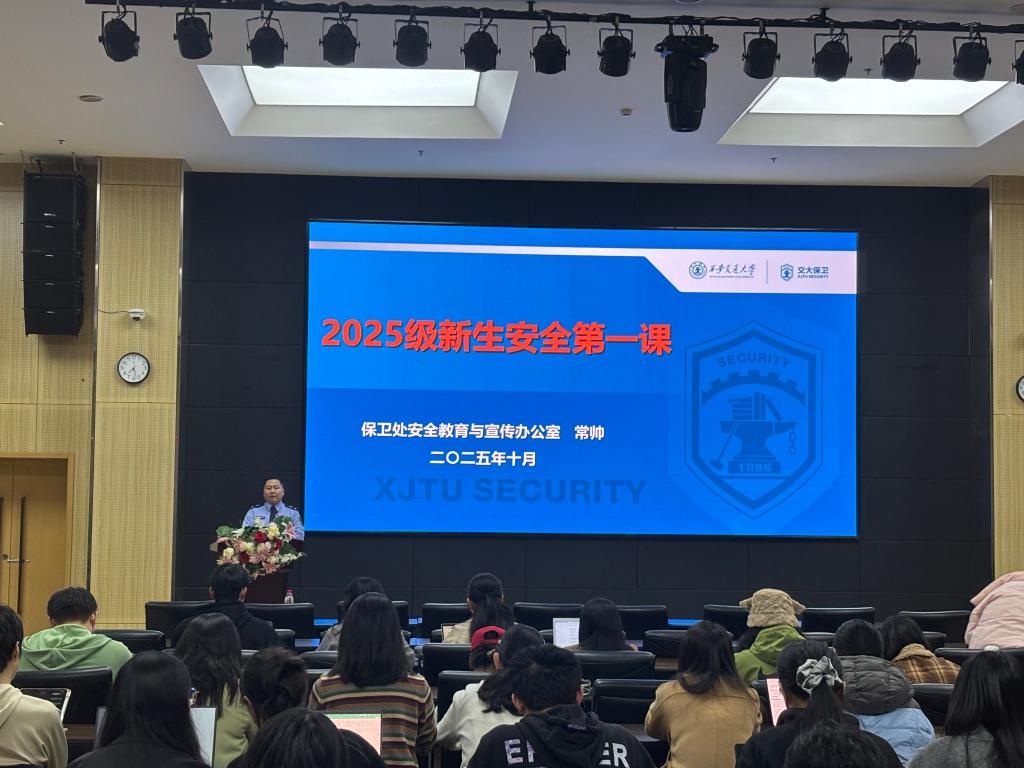 校保卫处的常帅老师以“喜迎新生·安全先行——2025级新生安全第一课”为主题接续开讲。常老师以近年来高校内频发的诈骗案件为切入点提醒同学们一定要警惕不法分子,并表示这些案例不是别人的故事,而是发生在我们身边的风险,他提醒新生牢记“三不一要”防骗准则,遇到疑问第一时间联系保卫处或辅导员。交通安全是校园安全的重要组成部分,常老师通过播放交通事故视频,让新生直观感受到违反交通规则带来的严重后果,再次提醒同学们在校园里应严格遵守交通法规。随后他结合校园安全的典型案例,围绕消防安全、国家安全、法律常识等方面展开宣讲,他呼吁同学们将安全意识融入日常,主动学习安全知识,共同营造平安和谐的校园环境。