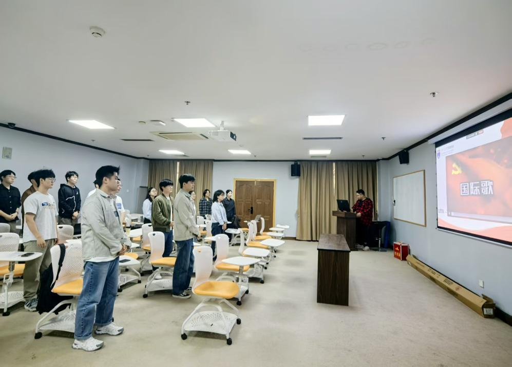 大会严格按照既定议程进行。邱泽林同志首先代表支委介绍本次竞选规则与评选程序,明确评审要求与纪律。随后组织全体齐唱《国际歌》,为答辩拉开序幕。